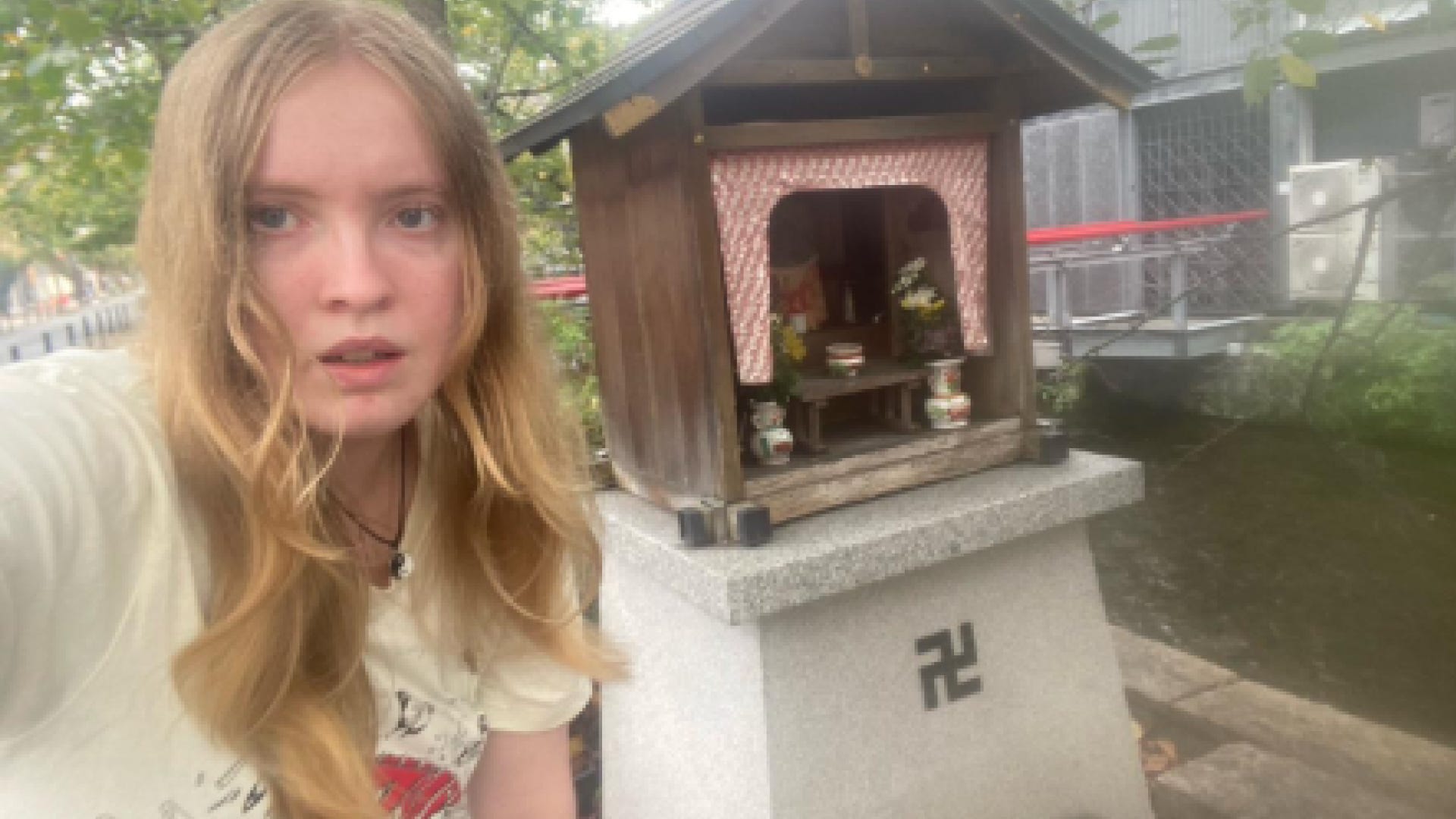 The legislation also creates legal risks for ordinary people when it comes to the ignorance of others. For example, if I were to publicly post this image of myself outside a Buddhist shrine that I found in Kyoto on my trip to Japan last year that happens to contain a swastika, would I be arrested if someone doesn’t understand the context of the swastika and reports it?